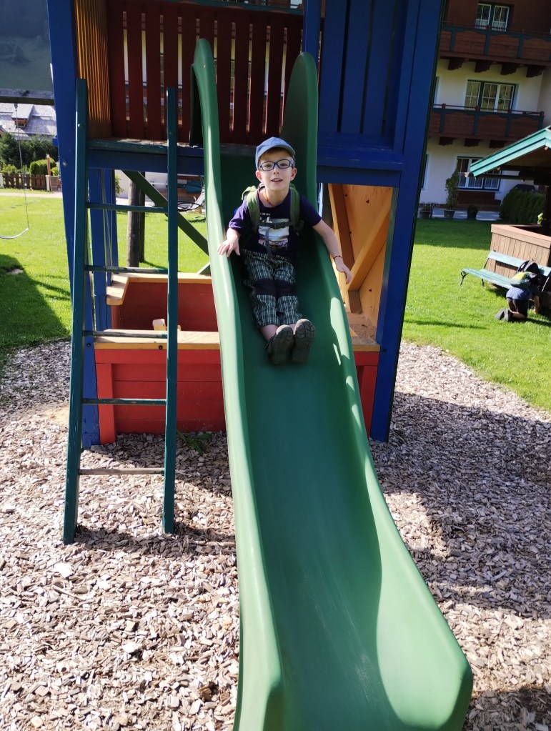 Ráno jsme se probudili a zjistili jsme, že venku prší. Takže náš plán, že pojedeme lanovkou na velké horské dětské hřiště padl. Museli jsme teda rychle vymyslet náhradní plán.