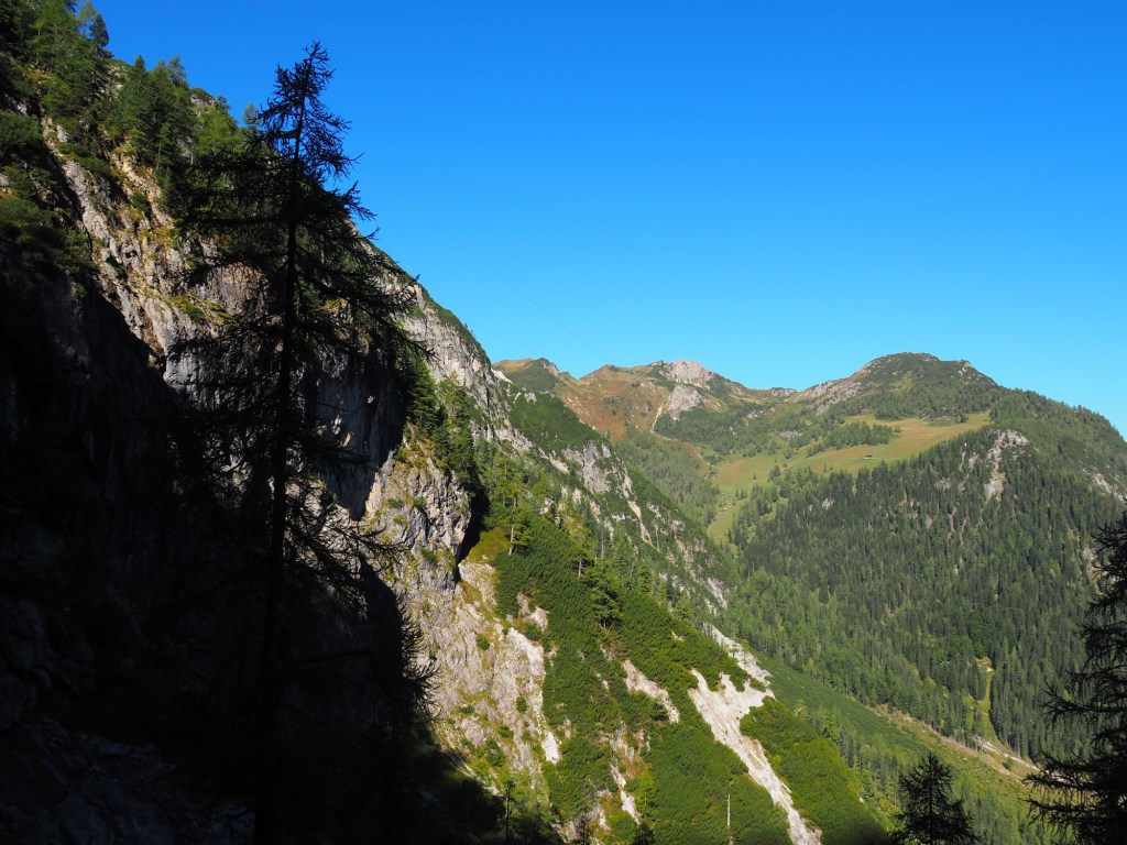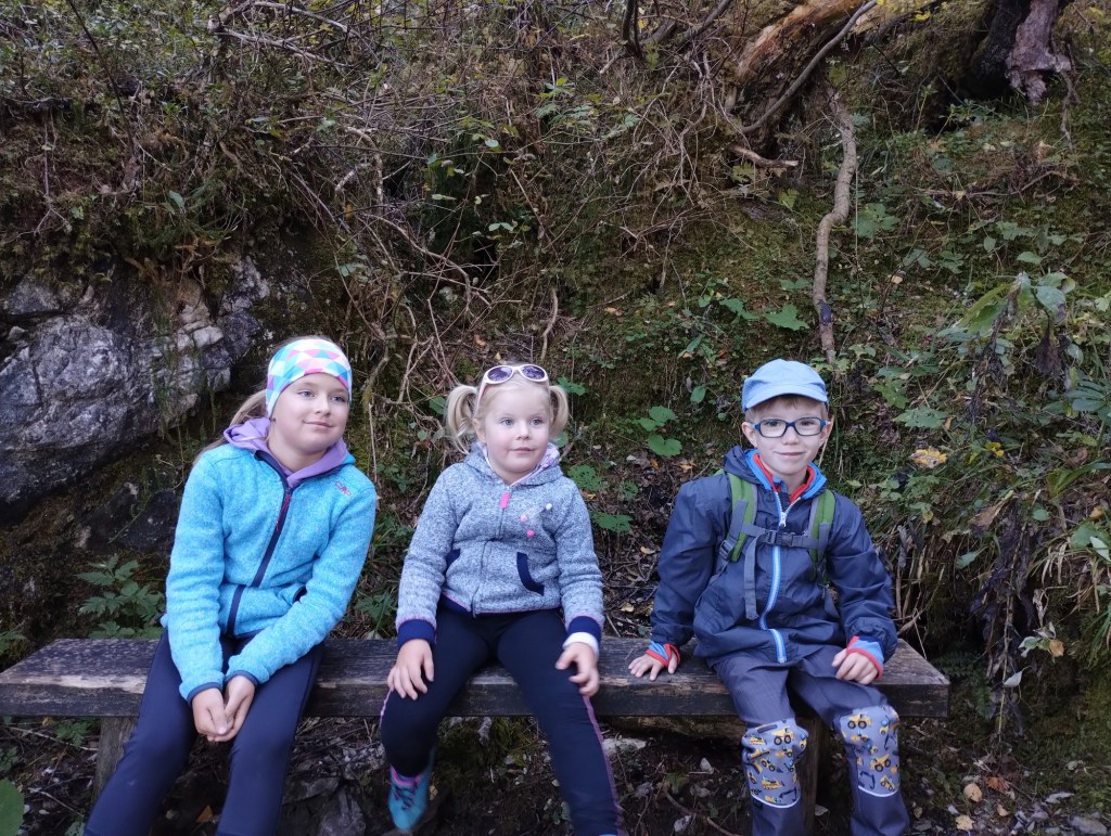 Ráno jsme postupně všichni začali chodit na záchod, takže jsme už před sedmou byli vzhůru. Dali jsme si snídani, sbalili batohy a vyrazili na první dnešní výlet na Lichtensteinklamm. Jeli jsme přes městečko St.Johann s krásným kostelem. Na benzínce tady měli levný benzín (dokonce levnější než u nás), takže jsme natankovali do plnou nádrž. Taťkovi se ještě povedlo přejet odbočku, ale Samík naštěstí dával pozor, takže jsme to vyřešili dříve než se navigace vzpamatovala. Zaparkovali jsme a pomalu vyrazili k soutěsce.