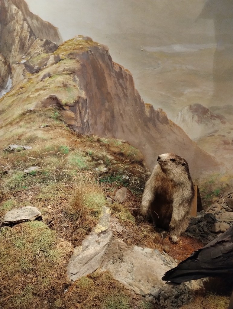 Nejprve byli v přízemí dinosauři a mořský svět. Také zajímavá dioramata nebo jak to nazvat, různé scenérie ze života kočovníků, které vypadaly krásně plasticky a reálně. Další patro patřilo minerálům, drahokamům, vesmíru, ale i různým vycpaným zvířatům.