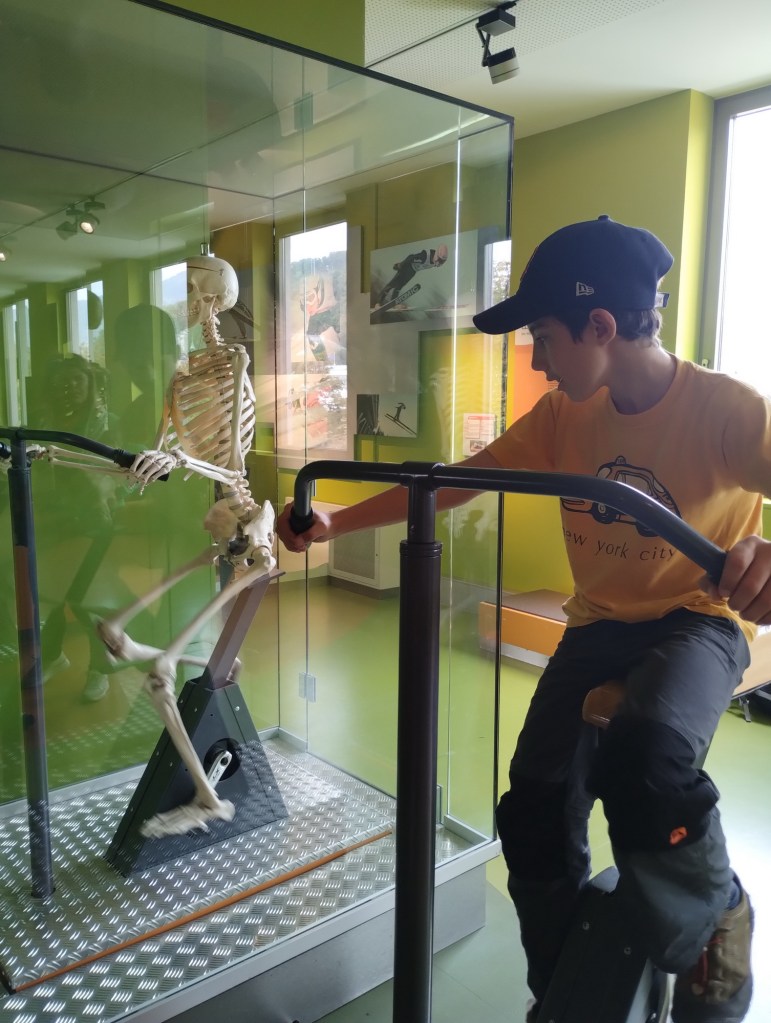Ve třetím patře byla hala alá Dolní oblast Vítkovic nebo Vida v Brně. Kluci se tady zabavili na dlouho a z proskleného výklenku byl krásný výhled na Salzburg. Pak jsme bohužel minuli oddělení s lidským tělem a sešli druhou stranou do patra, které bylo věnováno preparování a vycpávání zvířat.