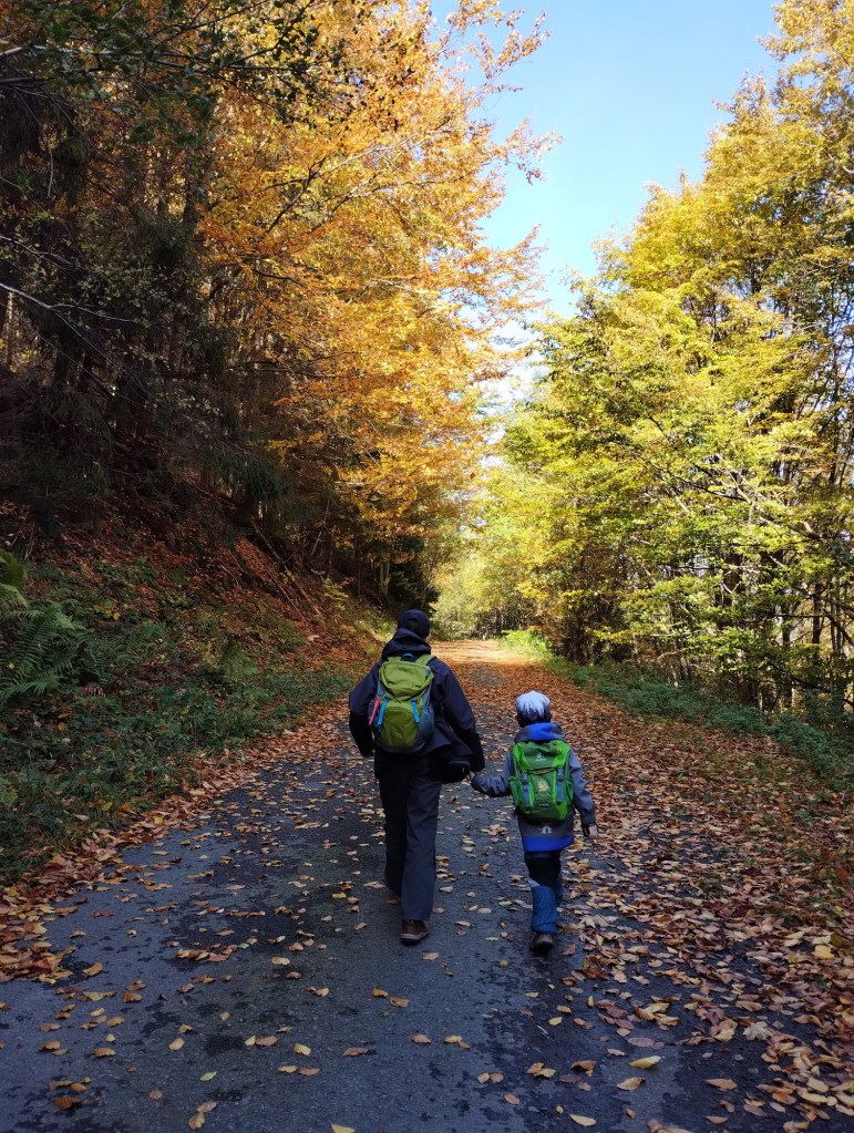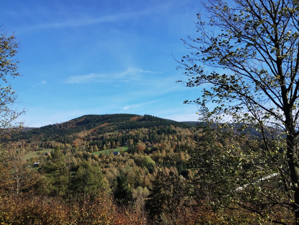 Sbalili jsme jídlo a pití a vyrazili jsme. Na Lipovém jsme šli po naučné stezce Wolfram Morávka, pak jsme ze stezky uhli a došli jsme až pod Malý Travný. Tam jsme si dali svačinku a podél horní stanice vleku sjezdovky Sviňorky jsme se vydali zpátky dolů na Morávku. Přes louku jsme se dostali k potoku Visutému a pak už to bylo kousek do centra Morávky. Tam nás vyzvednul Míša a jeli jsme domů na oběd. Byla to nádherná procházka podzimní přírodou, která nám dodala spoustu sil na boj s bacily.