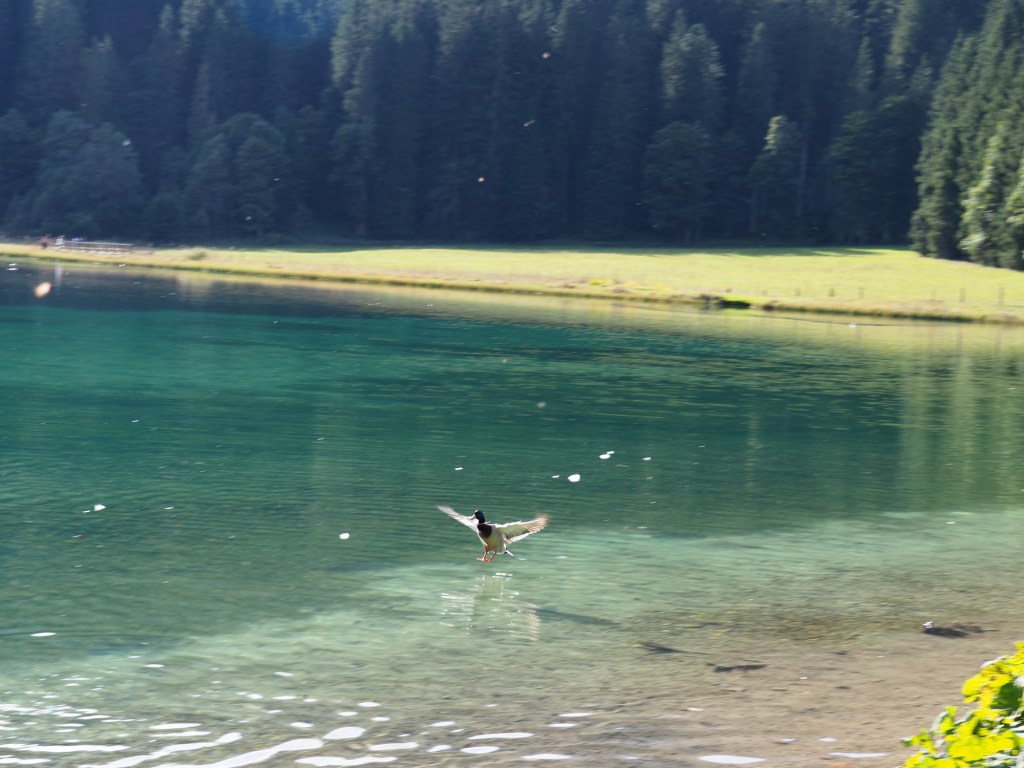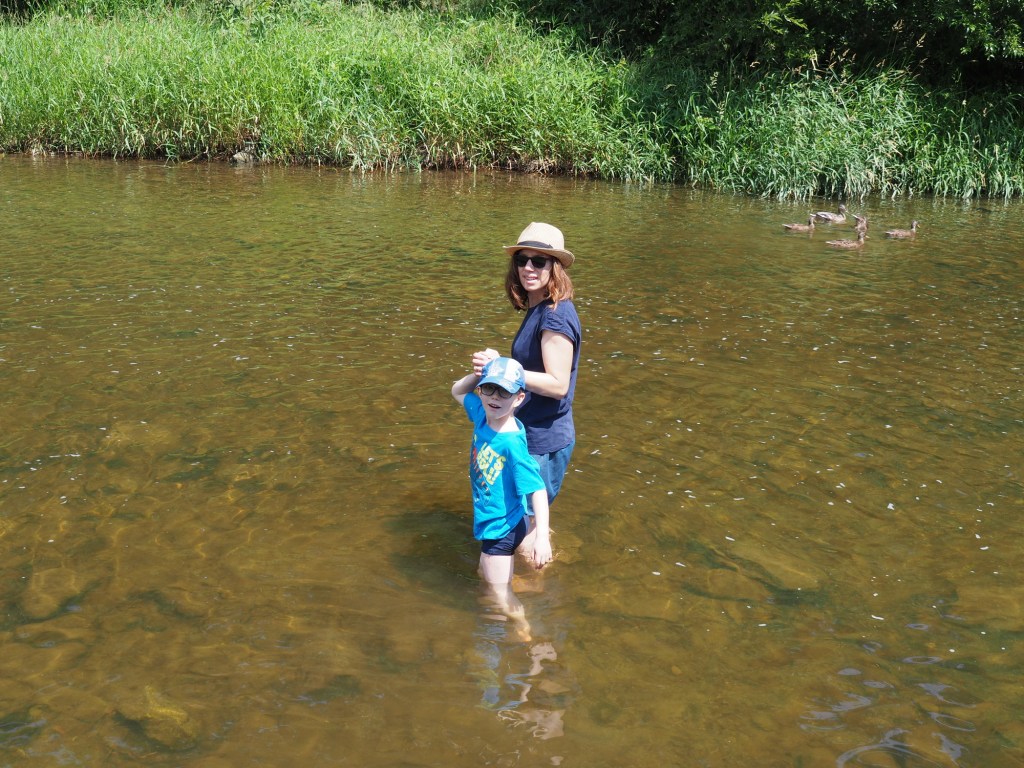 Pak jsme se auta přesunuli k jezeru Jägersee, kde jsme nakrmili kačenky a labutě a pak ho celé dokola obešli. Byla to moc hezká procházka i kolem řeky, která jezero napájí ,a která po nedávných původních úplně změnila koryto toku.