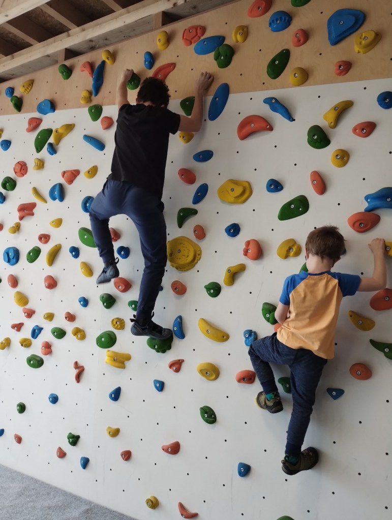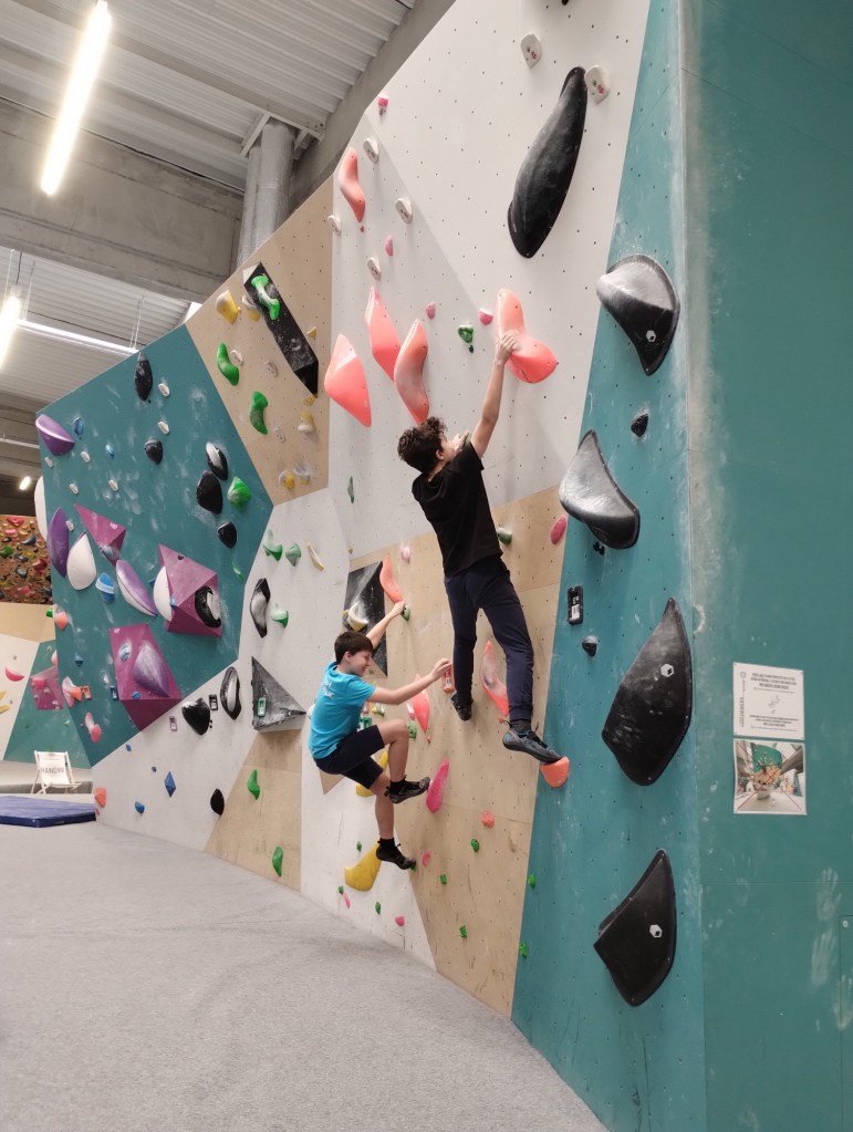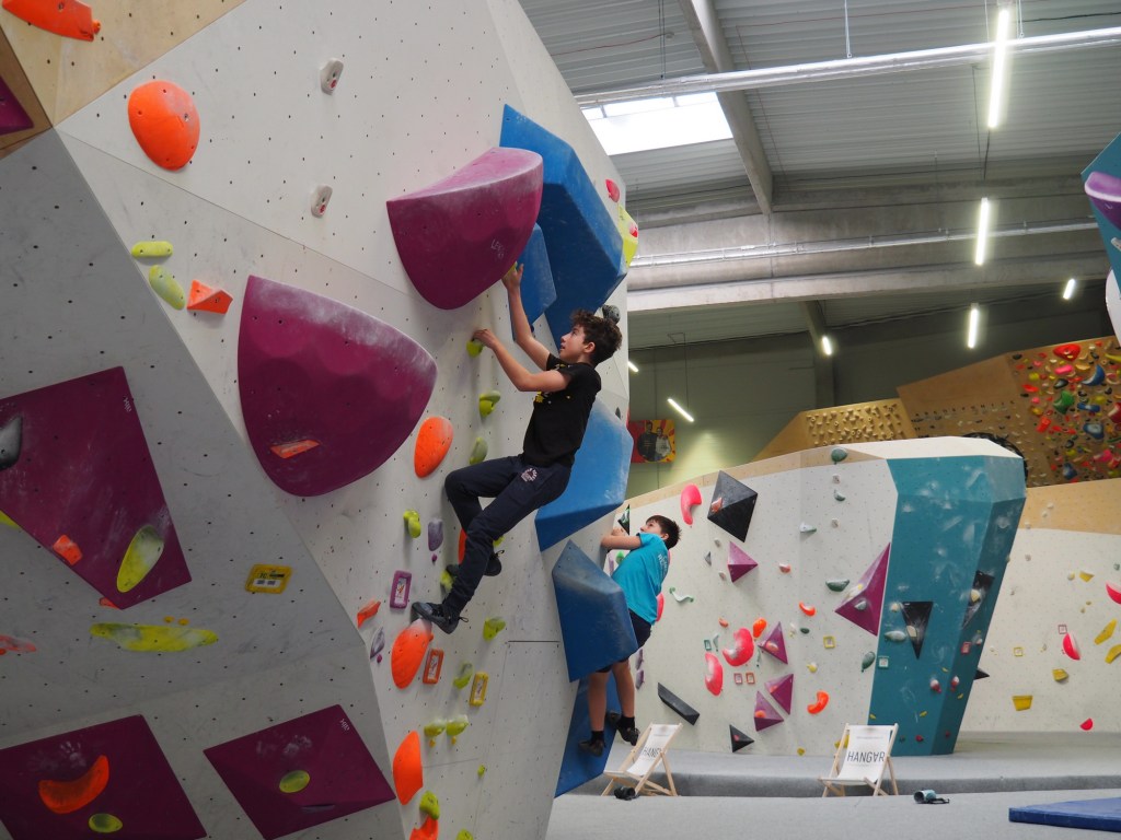 V pondělí a úterý jsme Samíkovi nechali prostor na to, aby strávil prázdninový čas po svém a my ještě byli v práci a Bernášek ve školce. Ve středu jsme vyrazili do Hangáru – je to velké bouldrové centrum v Ostravě Porubě. Vzali jsme s sebou i Samíkova kamaráda Radka.