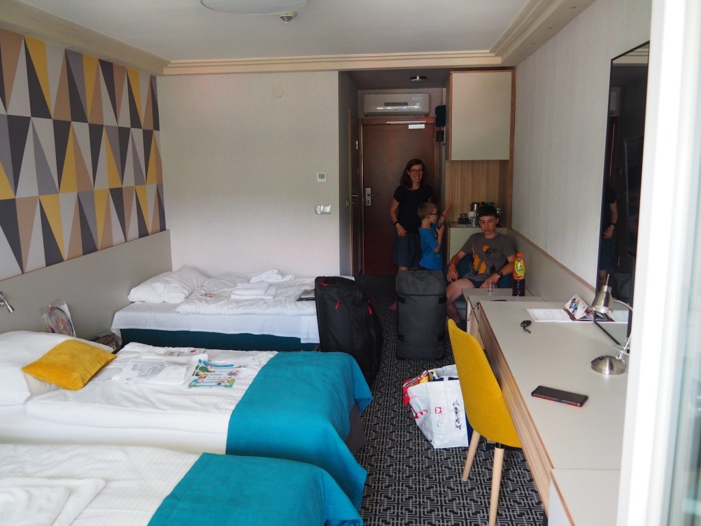 Cestou zpátky jsme to vzali přes krásný park a pak už jsme udělali rychlý nákup v Lidlu a vyrazili na hotel. Ubytovali jsme se a kluci už pak neměli stání. Převlékli jsme se do plavek a šli obhlédnout venkovní bazén a hotelové zahrady. Bylo to moc příjemné zchlazení v horkém dni.