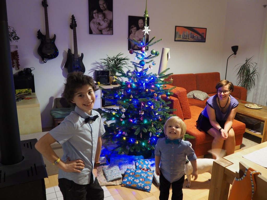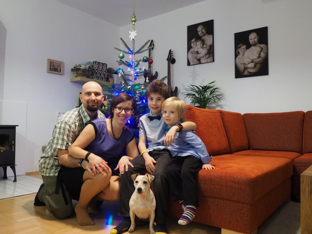 A už nezbývalo než čekat na Štědrý den. Probudili jsme se do nevlídného upršeného rána a tak jsme ani neměli moc chuť vyrazit na procházku. Takže jsme se váleli u televize a koukali na pohádky. Odpoledne jsme připravili kapra, slavnostně se oblékli a pak už nastala ta chvíle. Zasedli jsme ke štědrovečerní večeři. Všichni jsme si pochutnali na hrachové polévce a bramborovém salátu – my rodiče ho měli s kaprem a kluci s lososem. Když už jsme měli plná bříška, šli jsme jako tradičně čistit zoubky a pak zpívat Ježíškovi koledy, aby věděl, že už máme po večeři a může k nám přijít s dárečky. Se zatajeným dechem jsme vyhlíželi z okna a čekali, jestli uslyšíme zvoneček.