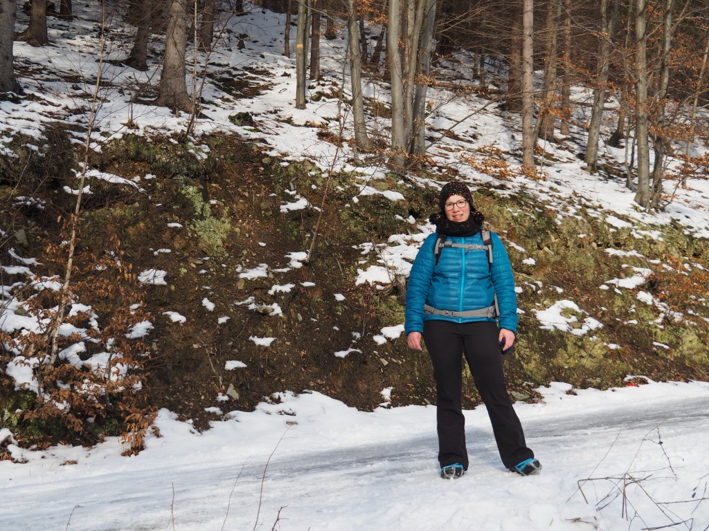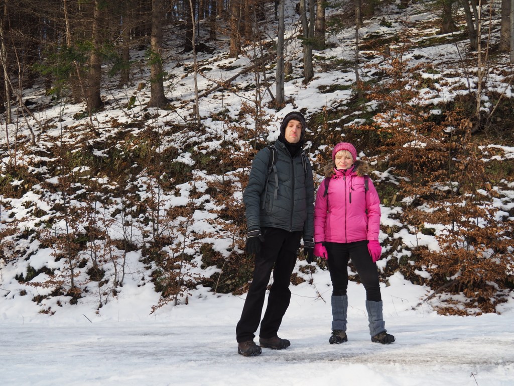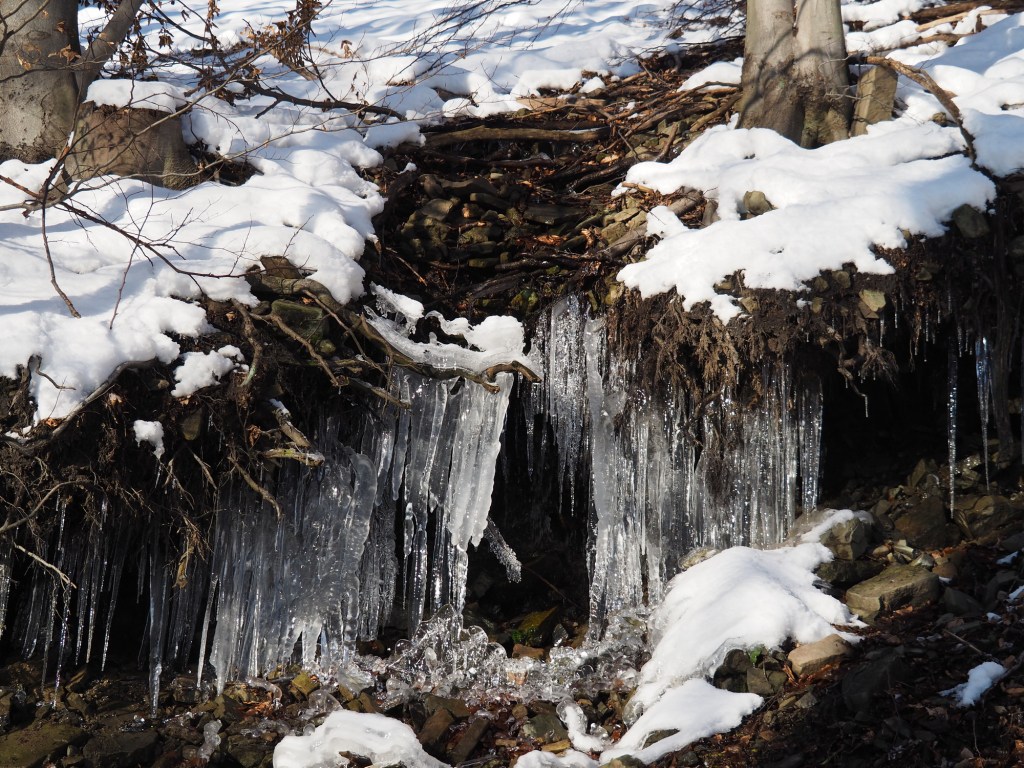 Vysuté vodopády vůbec v tomto ročním období nevypadaly jako vodopády, budeme si muset udělat výlet na jaře, až bude tát sníh. Teď jsme obdivovali pouze krásné a veliké rampouchy a dávali pozor, kam šlapeme, protože cesta byla místy dost podmáčená. Sluneční paprsky mají opravdu velikou sílu.