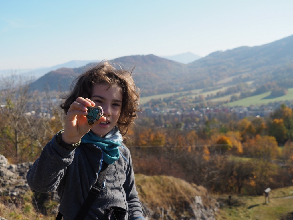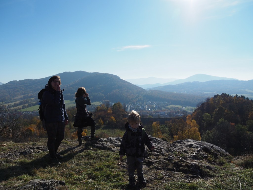 A je tu další výlet. Tentokráte do Štramberka. Plán byl zaparkovat u arboreta, jít zkusit hledat „hvězdičky“ – zkameněliny drobných živočichů a pak se jít projít kolem Štramberka. Cesta i parkování proběhly bez problémů, ale arboretum bylo bohužel zavřené. No nevadí, vydali jsme se po naučné stezce ke Kamenárce a dále k rozhledně Bílá hora a rozhodně jsme nelitovali. Nedaleká Kamenárka byla úžasná. Krásné výhledy, skály do toho nám pěkně svítilo sluníčko, no prostě paráda.
