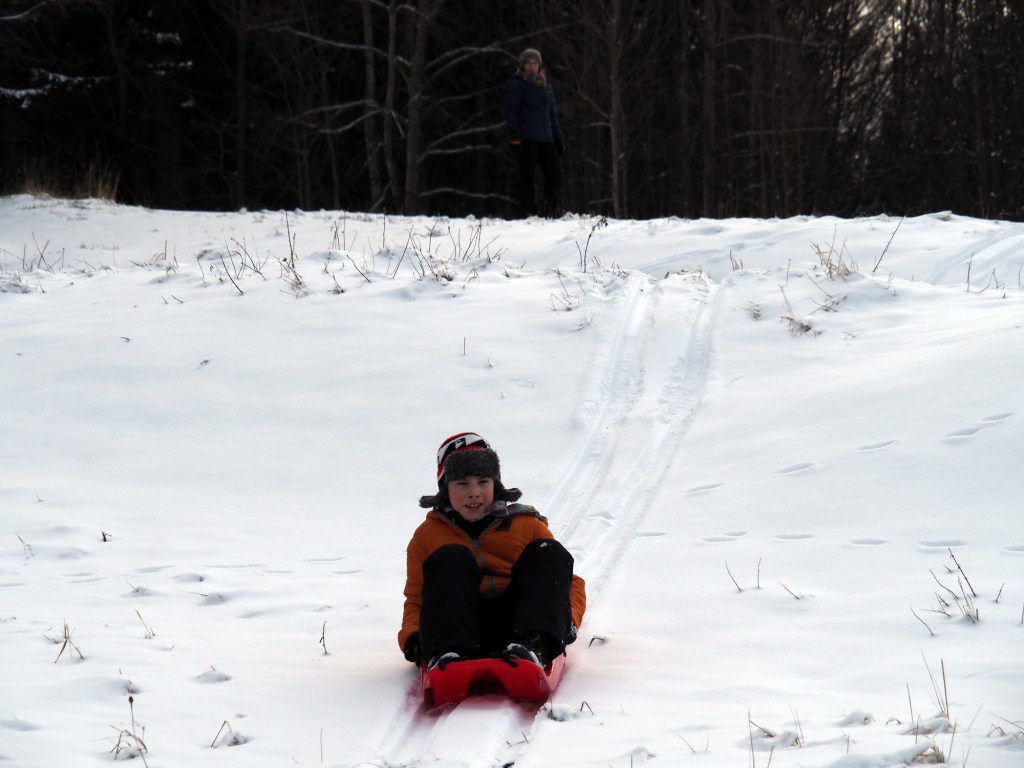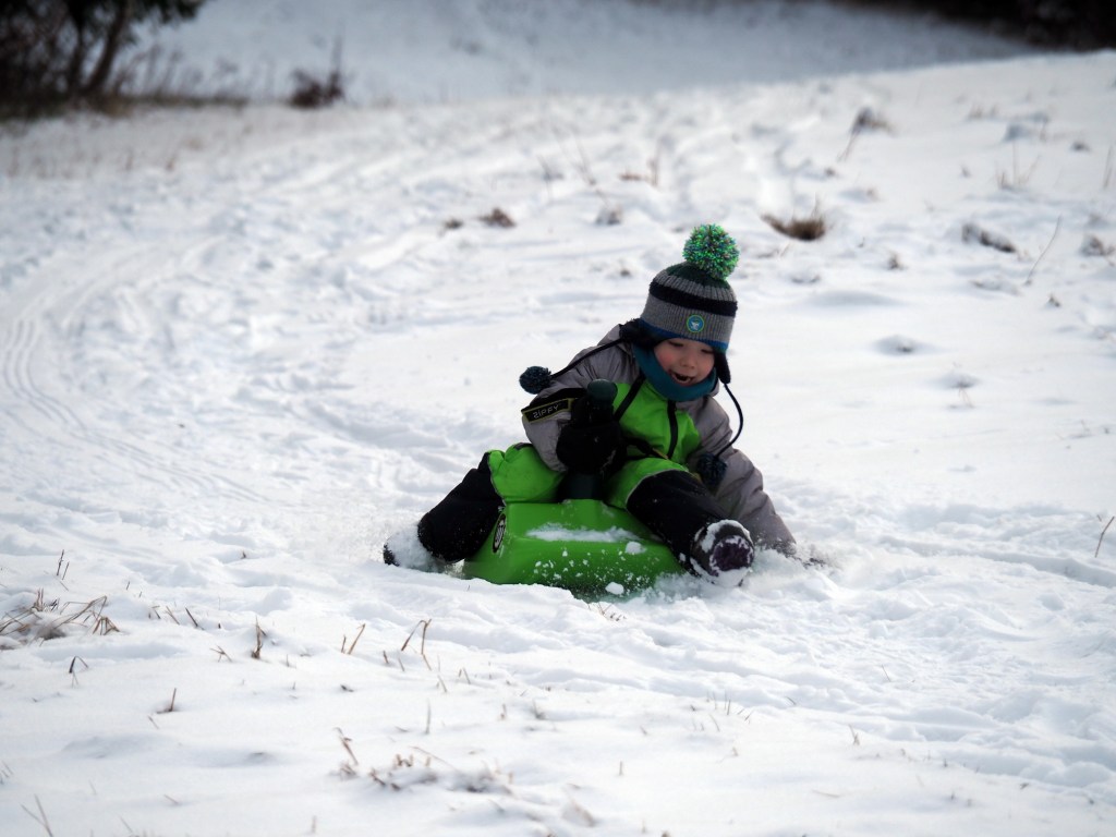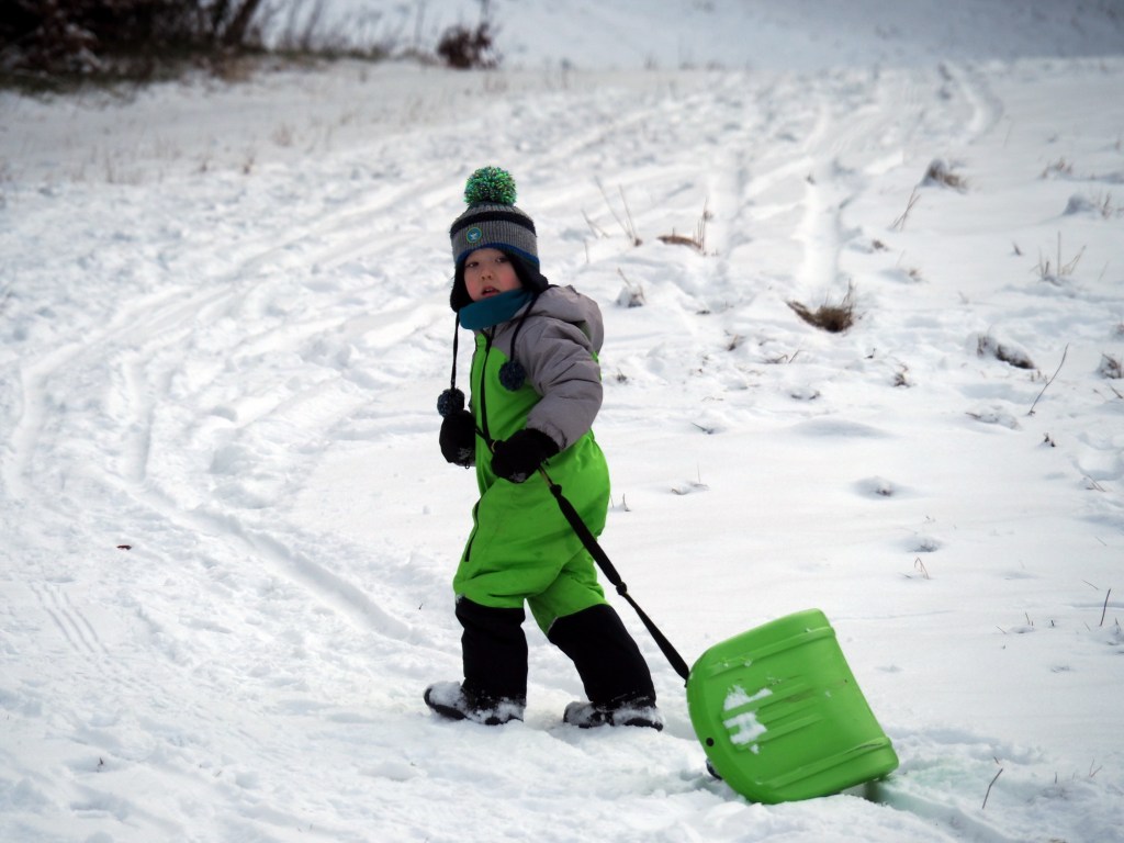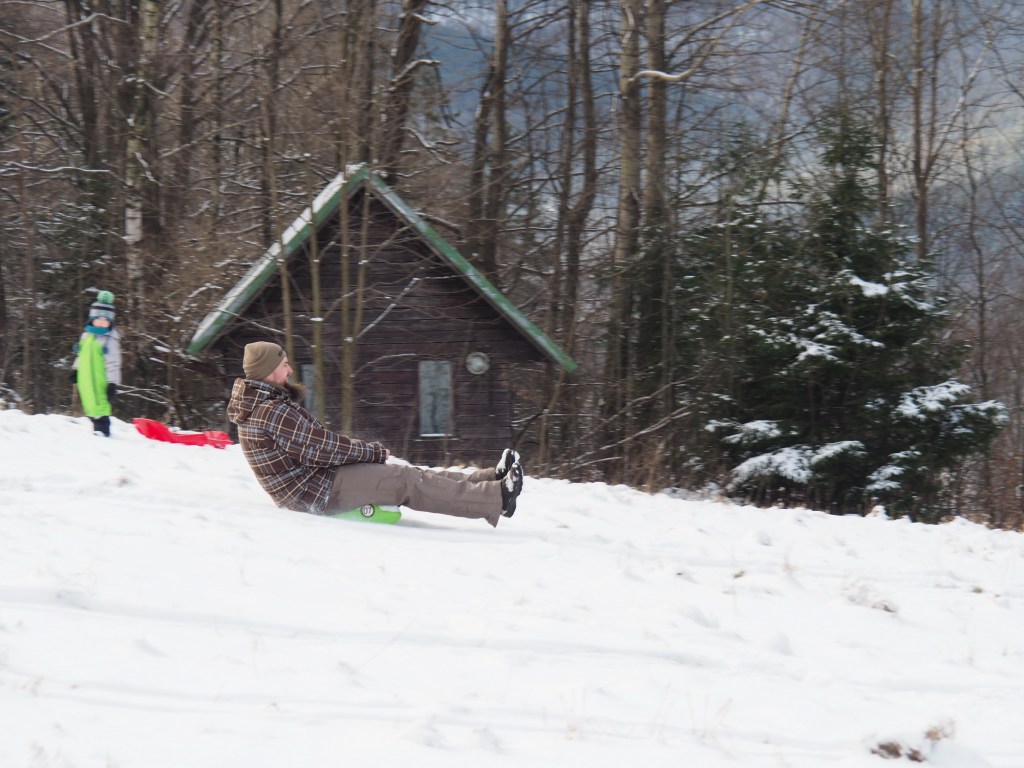Vánoce utekly jako voda, oba vánoční svátky jsme strávili návštěvami rodiny a jezením hodně jídla, takže jsme si řekli, že v pondělí vyrazíme ten bramborový salát trošku vysportovat. Protože byl všude sníh, rozhodli jsme se, že spojíme příjemné s užitečným, a půjdeme si zabobovat. Naložili jsme takřka veškerou naší sáňkovací výbavu do Bronzíka a vyrazili na Krásnou, kde jsme zaparkovali u Rekreantu. Pak jsme vyrazili po žluté směr Přelač. Bylo to sice jen asi kilometr a půl, ale do prudkého kopce, takže nám výstup s veškerou bobovací výbavou dal docela zabrat. Ale dorazili jsme do cíle a po chvilce odpočinku vyrazili na bývalou sjezdovku jezdit. Nejlépe se osvědčily Zipfy, když Míša vyjezdil dráhu, svištěli jsme pak dolů z kopce rychlostí blesku. Když jsme se dostatečně vyřádili, nasadili jsme na nohy nesmeky a vyrazili zase dolů k autu. Byl to moc fajn dopolední výlet.