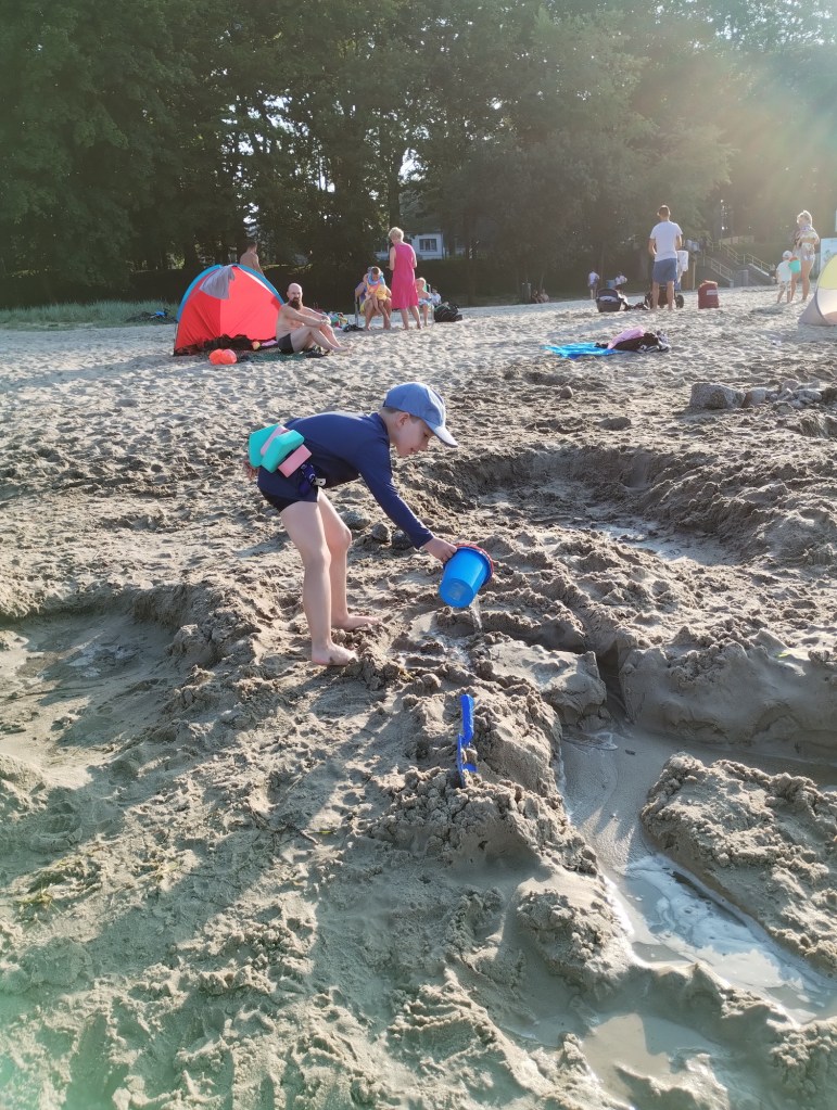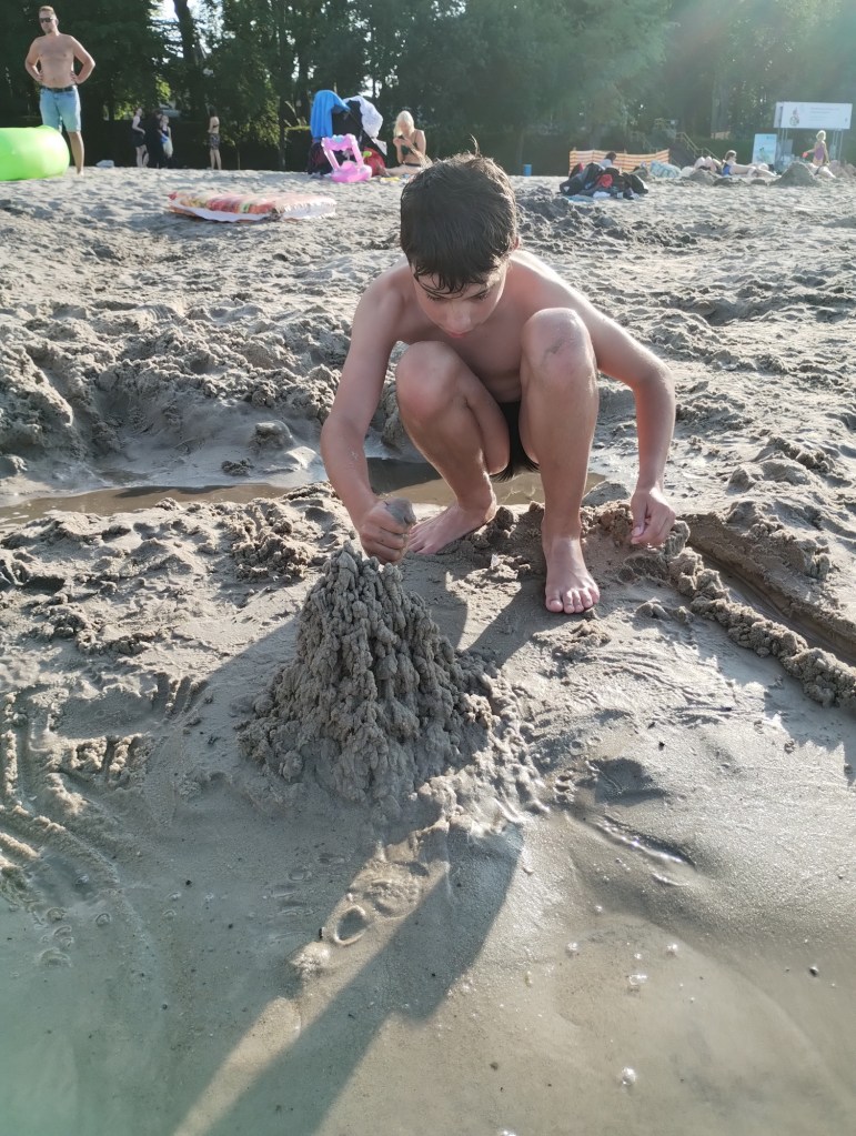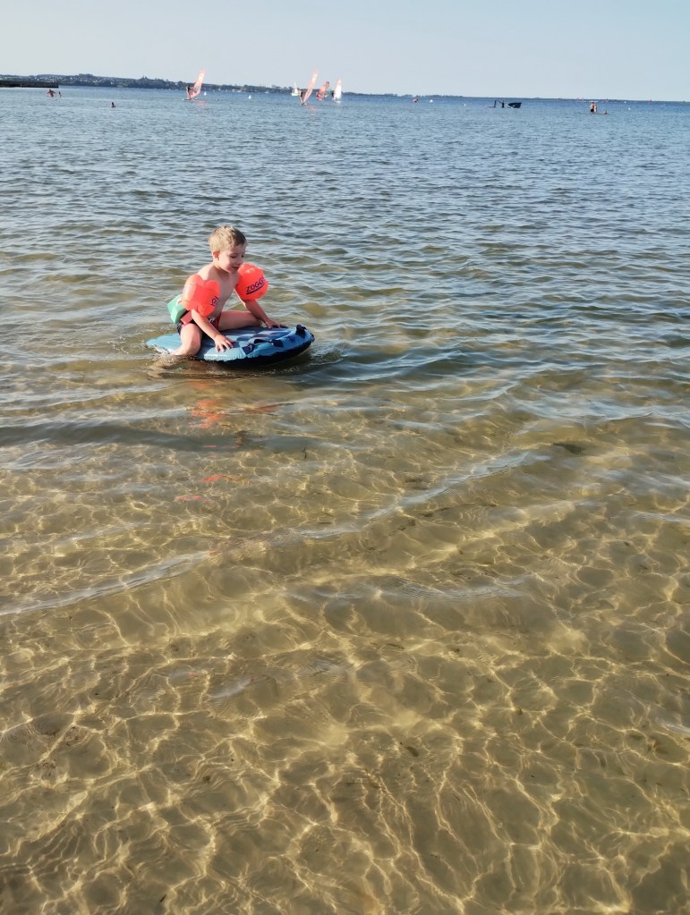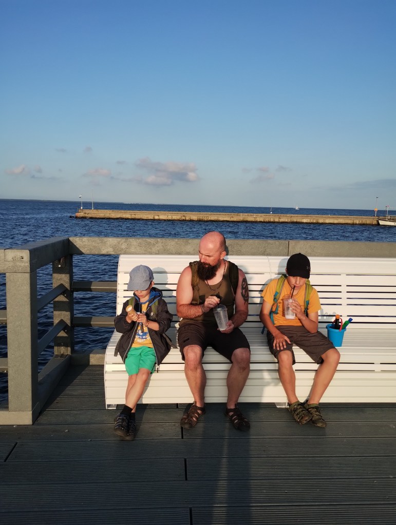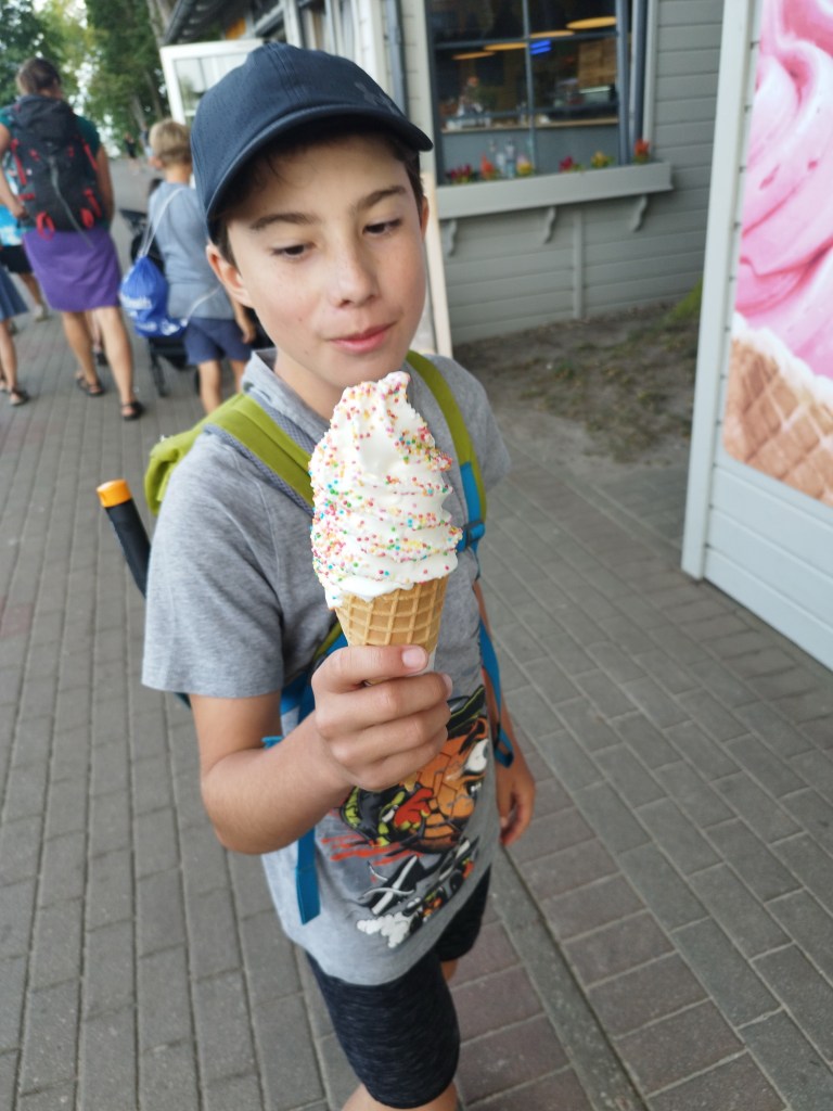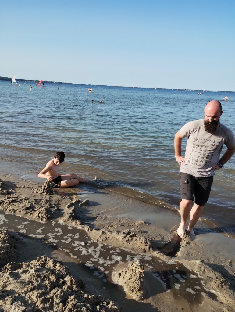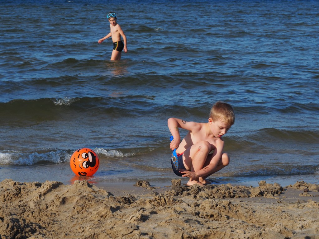 Pak jsme ještě šli na pláž, kluci se koupali a kopali v písku, Míša funěl a odpočíval po obědě na dece a Maki se šla okoupat. Trochu jsme si zdřímli na dece, kluci spolu ještě vyrazili k bójce a my jsme zkusili pustit draka. Krásně letěl a udělal radost dětem na pláži. Pak se docela zatáhlo a začal foukat vítr a tak jsme zaveleli k odchodu. Cestou zpět jsme si ještě dali výbornou zmrzku a shake.