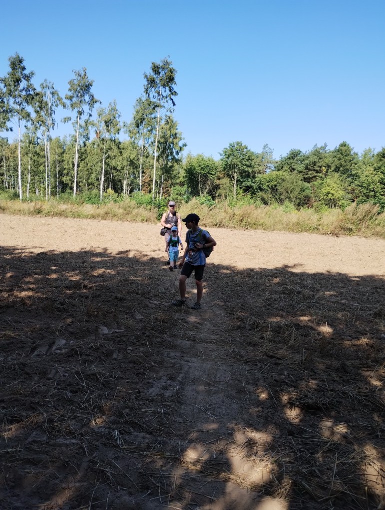Pak už cesta pokračovala v pohodě. Cyklostezka byla pro kola docela náročná, občas jsme narazili na dost prudké stoupání a nebo klesání. Ale pěšky jsme je zdolali a pokračovali podél polí a následně lesem dále. Provoz na cyklostezce moc nebyl, ale krom pár kol nás minul skútr a skupina koní s jezdci. V lese bylo všude plno velkých pavouků a taky velkých slimáků.
