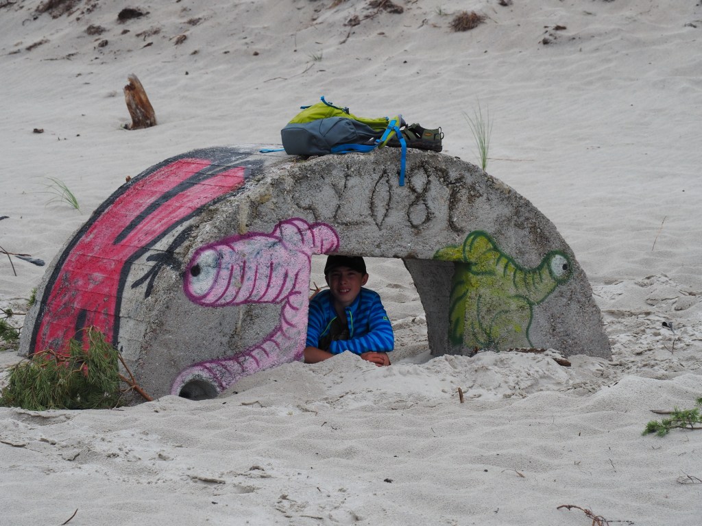 Míša se tomu jen smál, rodinka Murasových si vyšla z města do přírody a hned samá tragédie. Zanedlouho jsme došli k místu, ze kterého se dalo sejít k moři. Zkusili jsme to a našli malou plážičku a spatřili turistickou značku. Takže jsme šli celou cestu špatně – místo turistické trasy jsme šli cyklostezkou. Řekli jsme si, že zkusíme pokračovat tou turistickou.
