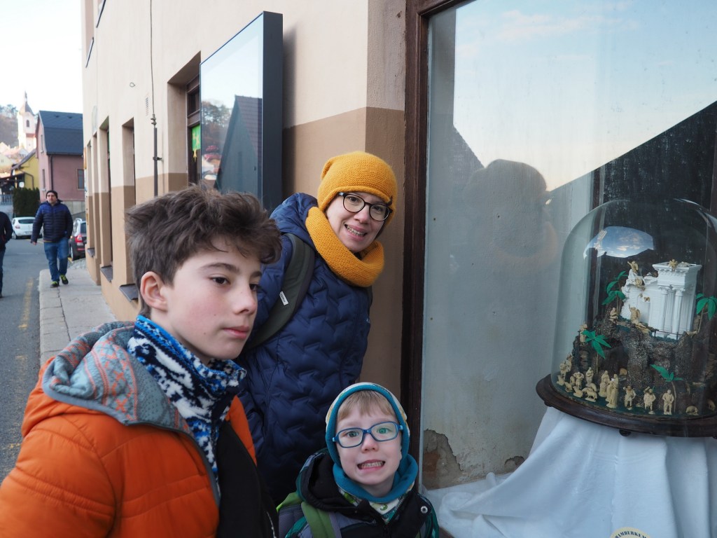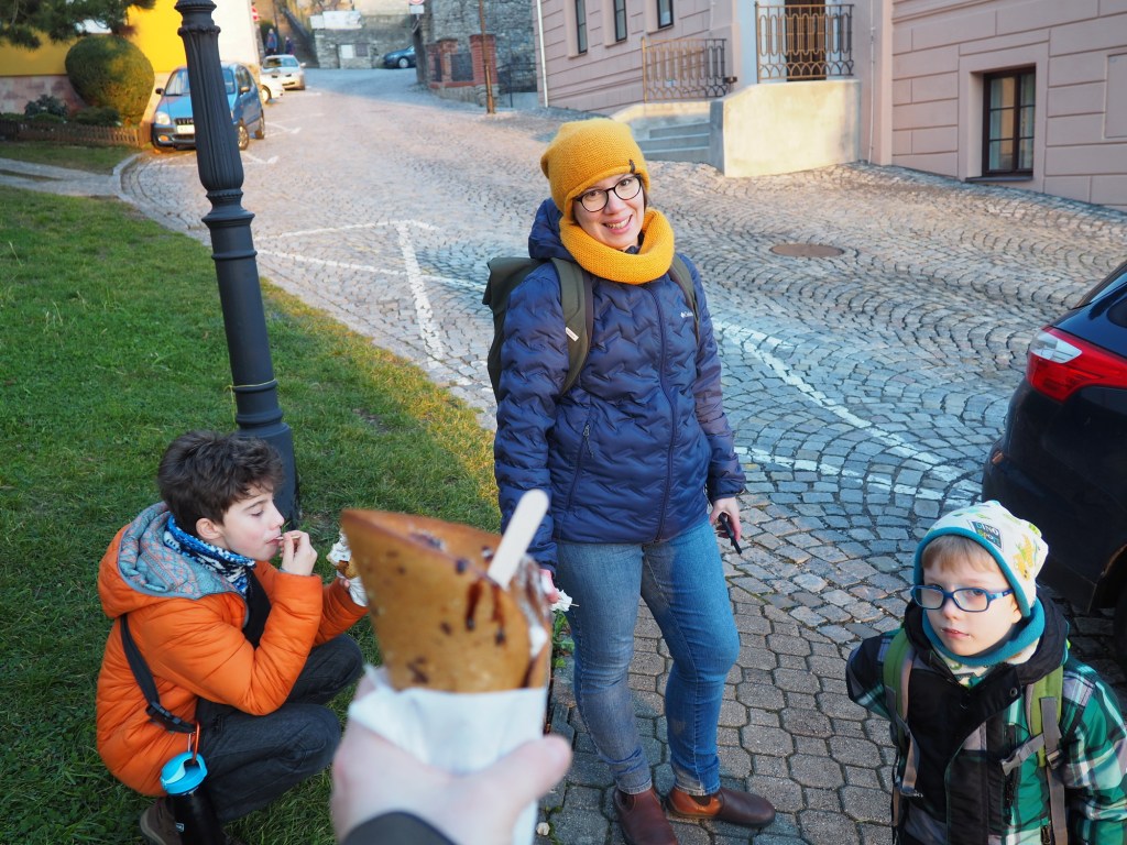 Pak jsme procházkou pokračovali do pražírny, kterou jsme si moc oblíbili. Dali jsme si kafe a kluci Grankočíno, které si zamilovali. Po krátkém odpočinku jsme pokračovali na pokoje, kde jsme si trochu odpočinuli, pak jsme si zašli dolů do restaurace na polévku a po malém obídku jsme se rozdělili do aut k dědovi Luďkovi a tetě Lucce a vyrazili jsme do Nitry.
